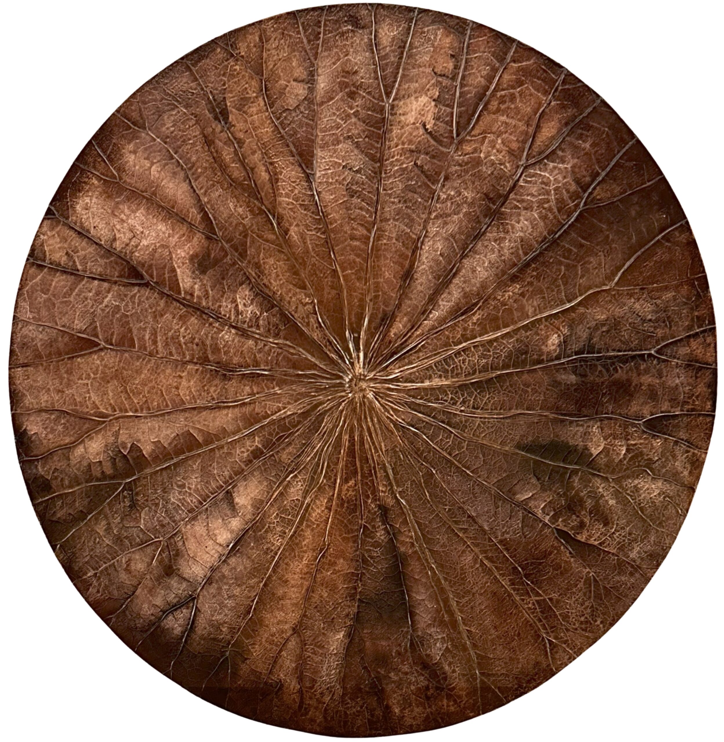 A single lotus leaf in soft brown and bronze tones stands strong and still. The artwork is simple, centered and quiet. It invites you to take a deep breath and feel the present moment. A beautiful reminder of peace in a busy world. Now.