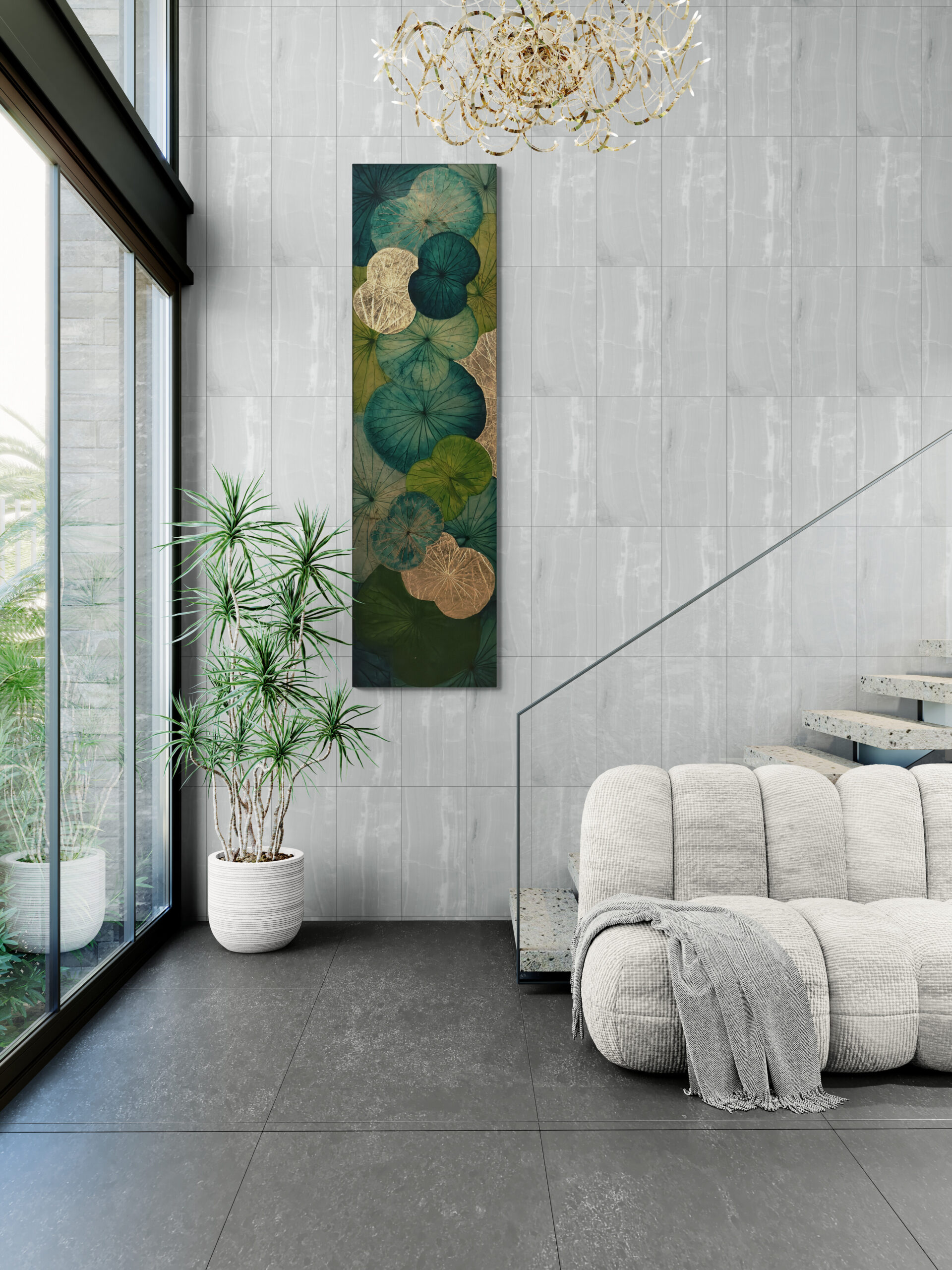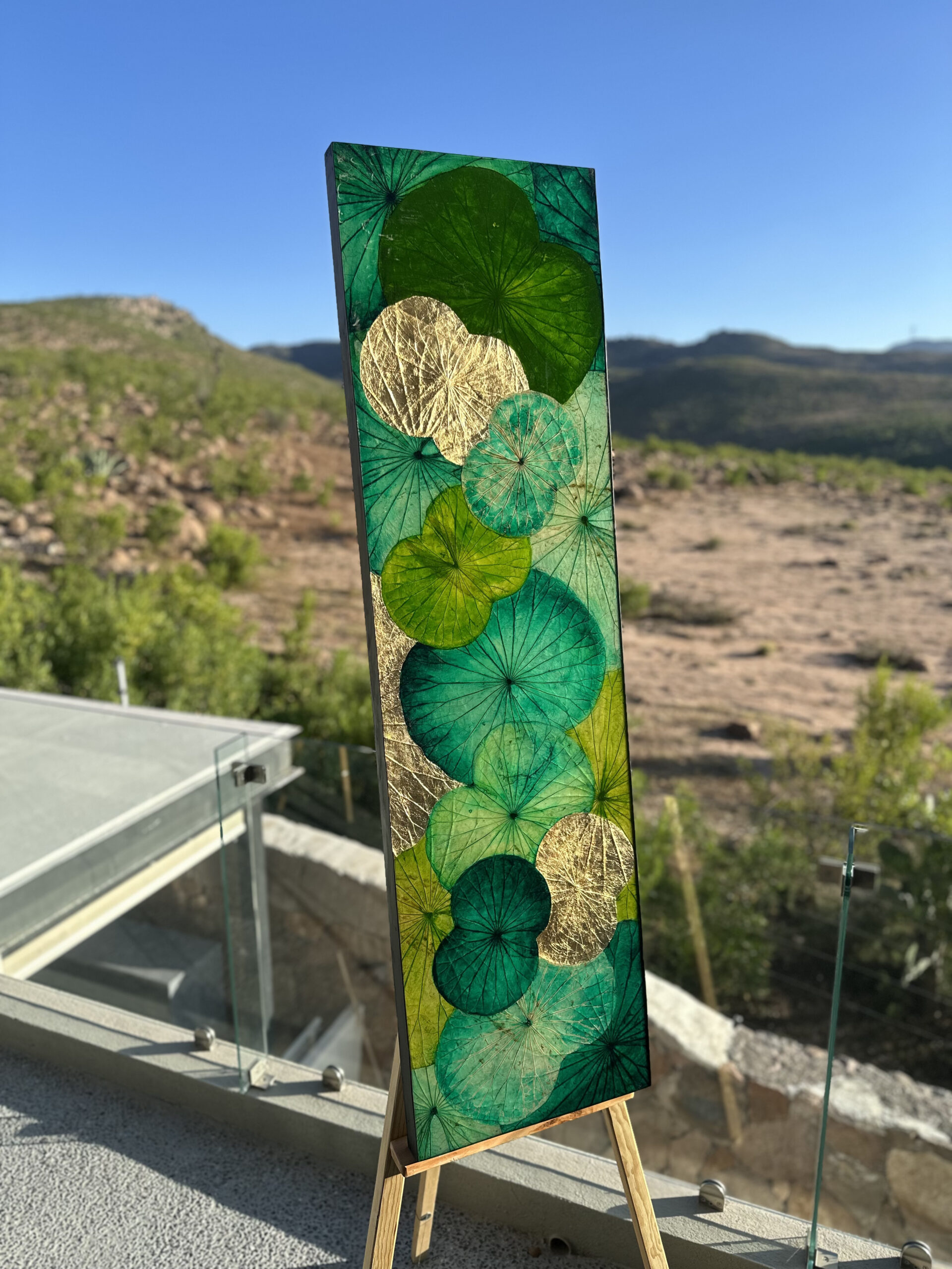 This artwork is filled with lush shades of emerald and green, reminding us of the richness and beauty found in nature. Each lotus leaf represents life, growth, and connection. The golden highlights shimmer in changing light, just like the many layers of life itself. A peaceful and elegant piece that brings calm energy into your space.